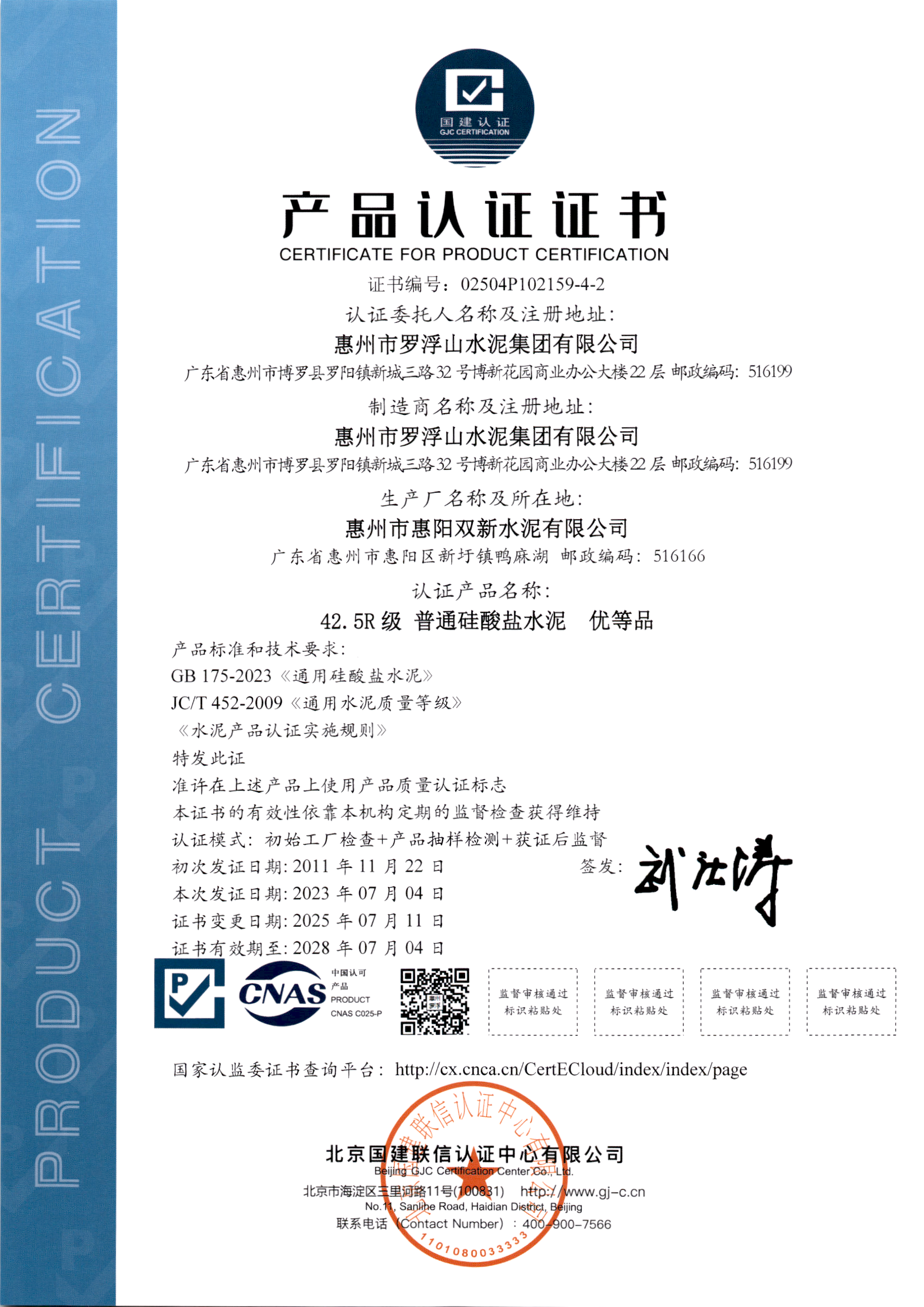 | 惠州市惠阳双新水泥有限公司-42.5(产品认证证书) |