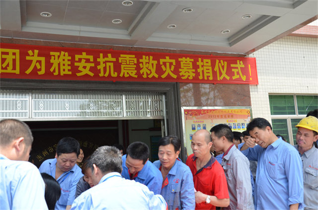 24日下午,集团下属各厂员工积极响应,纷纷行动起来,踊跃捐款,从公司领导到一线员工,全体员工纷纷伸出援助之手,你100元,我200元,一份份爱心从员工手中送进捐款箱,短短一个小时,就募集到爱心资金三万余元,为雅安受灾群众送去了关爱和温暖,以实际行动帮助受灾群众渡过难关。