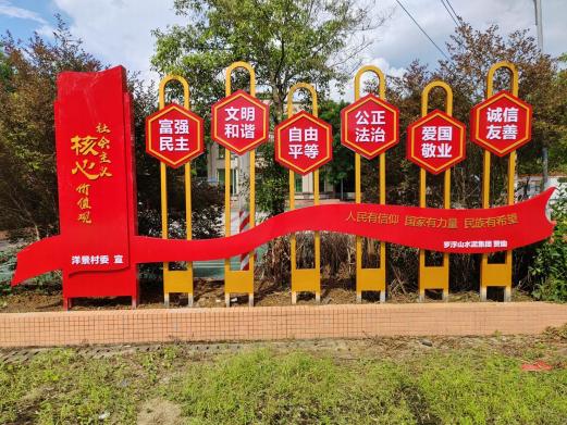 洋景村文化中心大楼由罗浮山水泥集团董事长吴国强全资捐建,于 2017年10月正式动工,历时10个月建成,总投资160万元,建筑面积610 平方米,是一座集村委办公用房、村民服务站、老年活动中心等多种 功能为一体的综合性活动场所。罗浮山水泥集团董事长吴国强先后为 文化中心、文化广场共捐善款280万元,捐赠洋景村党建文化墙48000 元,捐赠洋景村委大楼党员活动室音响投影设备3万元。